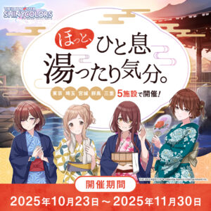 『アイドルマスター シャイニーカラーズ』コラボイベントが日帰り温泉旅館伊勢崎ゆま~るにて開催いたします!!【開催期間】10月23日(木)~11月30日(日) コラボ限定の入場特典や飲食キャンペーン、オリジナルグッズの販 […]